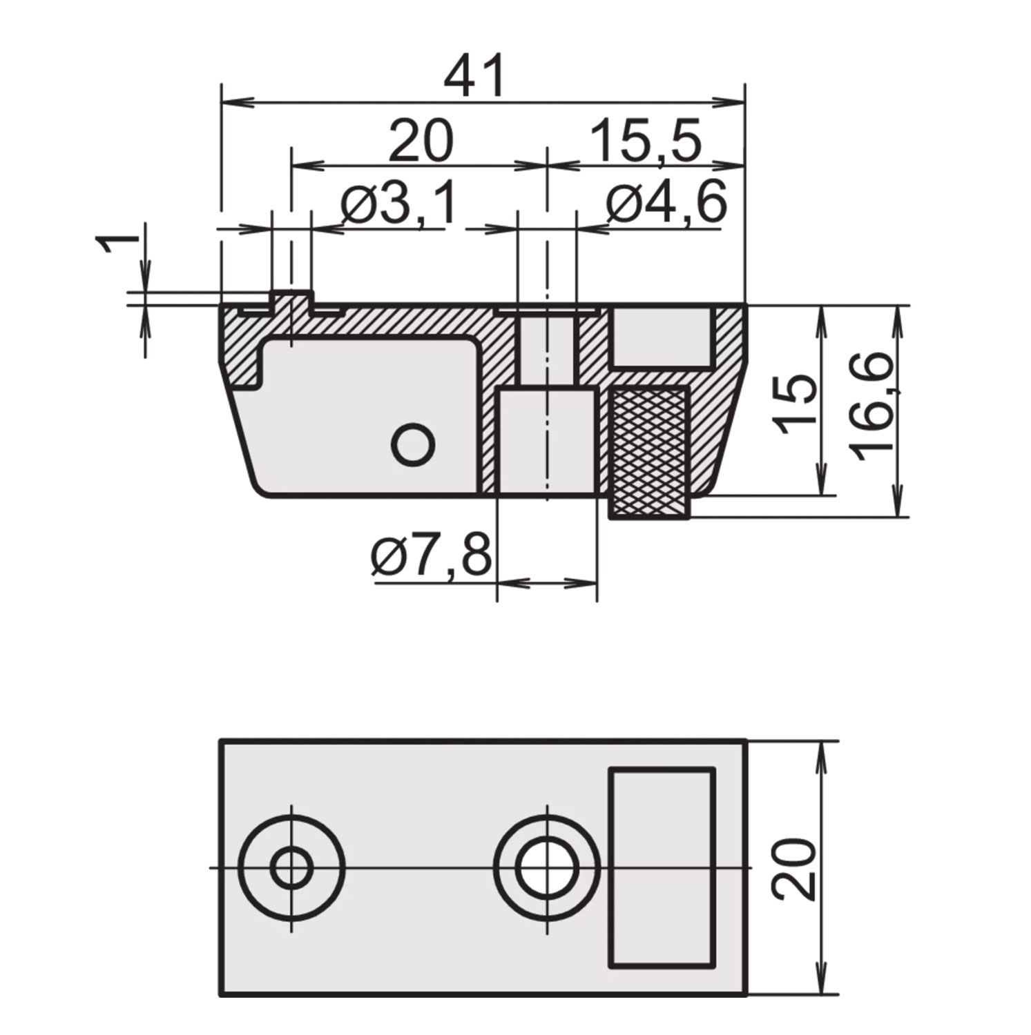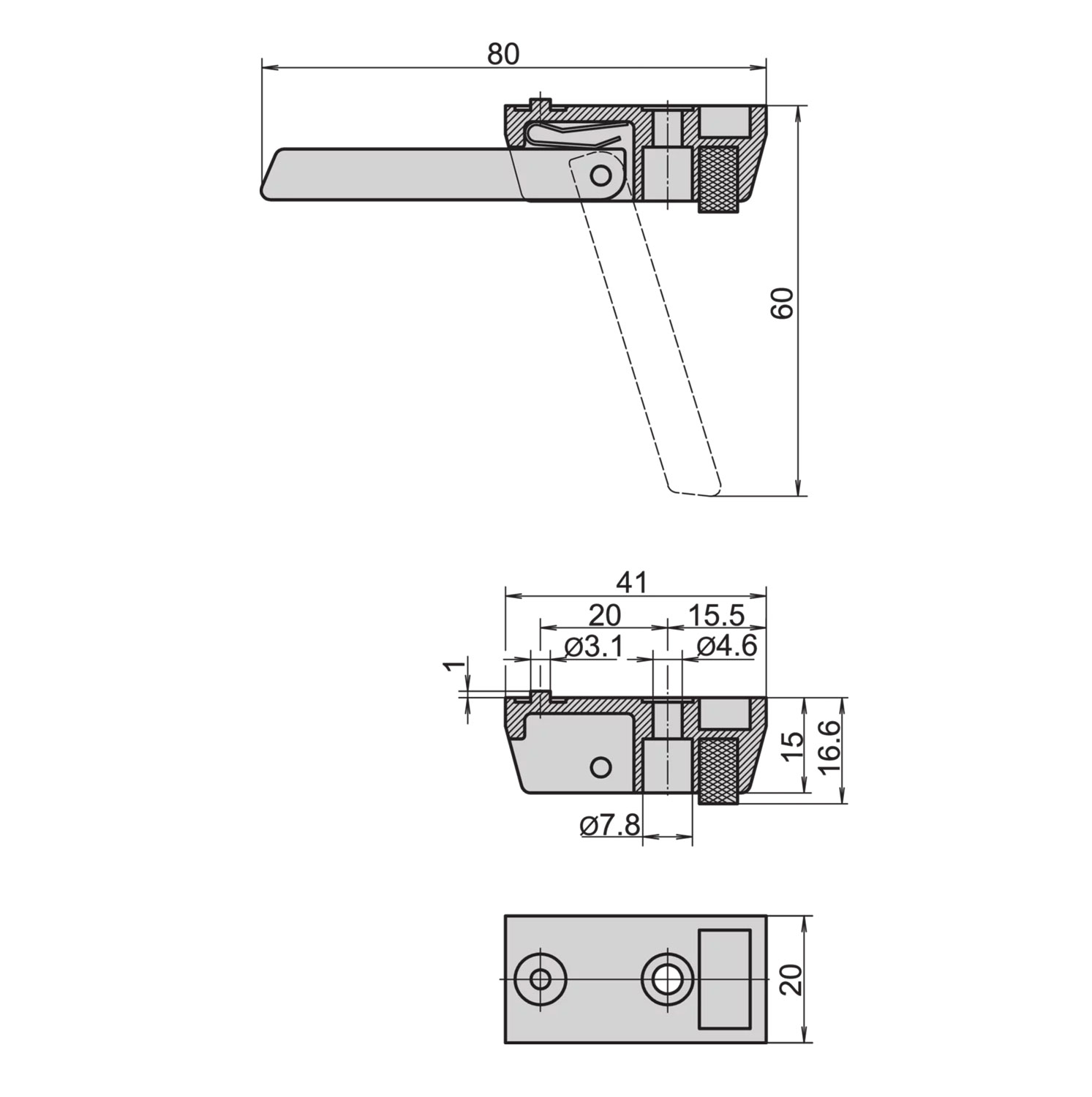 The tip‐up feet from aluminum die cast material enable mounting on the bottom plate of a case. Available with or without tip-up function. Color RAL 9006 White Aluminum.