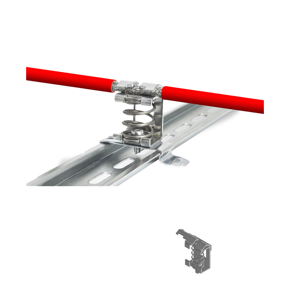| Material: | Shield clamp: Spring steel- zinc plated Shield bracket: Mild steel- galvanically zinc plated Screw foot: Mild steel- galvanically zinc plated |
